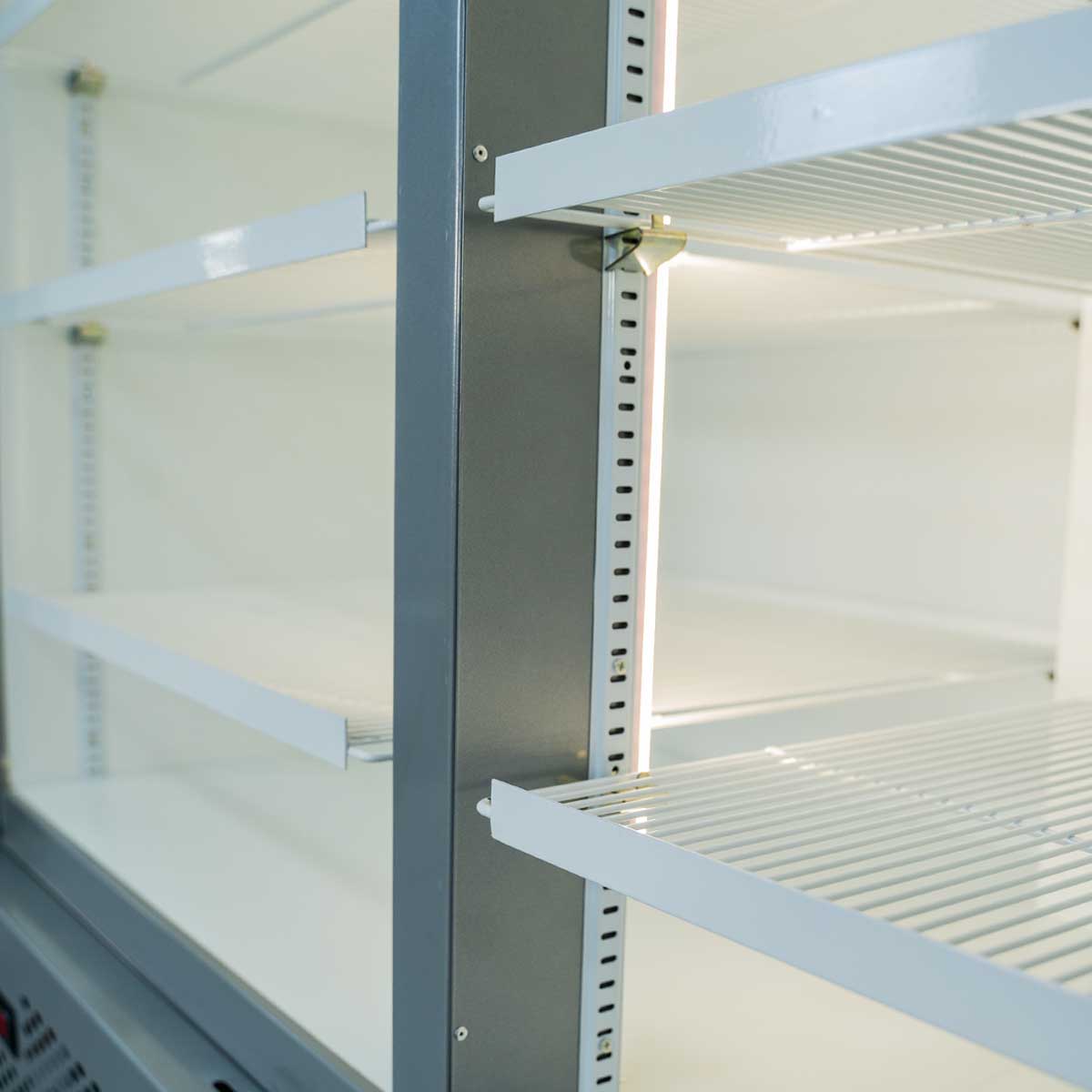 Достоинством шкафа Ангара являются: прекрасные термоизоляционные свойства, отличная система динамического охлаждения внутреннего объёма, легкость и удобство в обслуживании и эксплуатации.Применение светодиодной подсветки обеспечивает: великолепное освещение выкладки товара, большой срок службы и низкое электропотребление.
