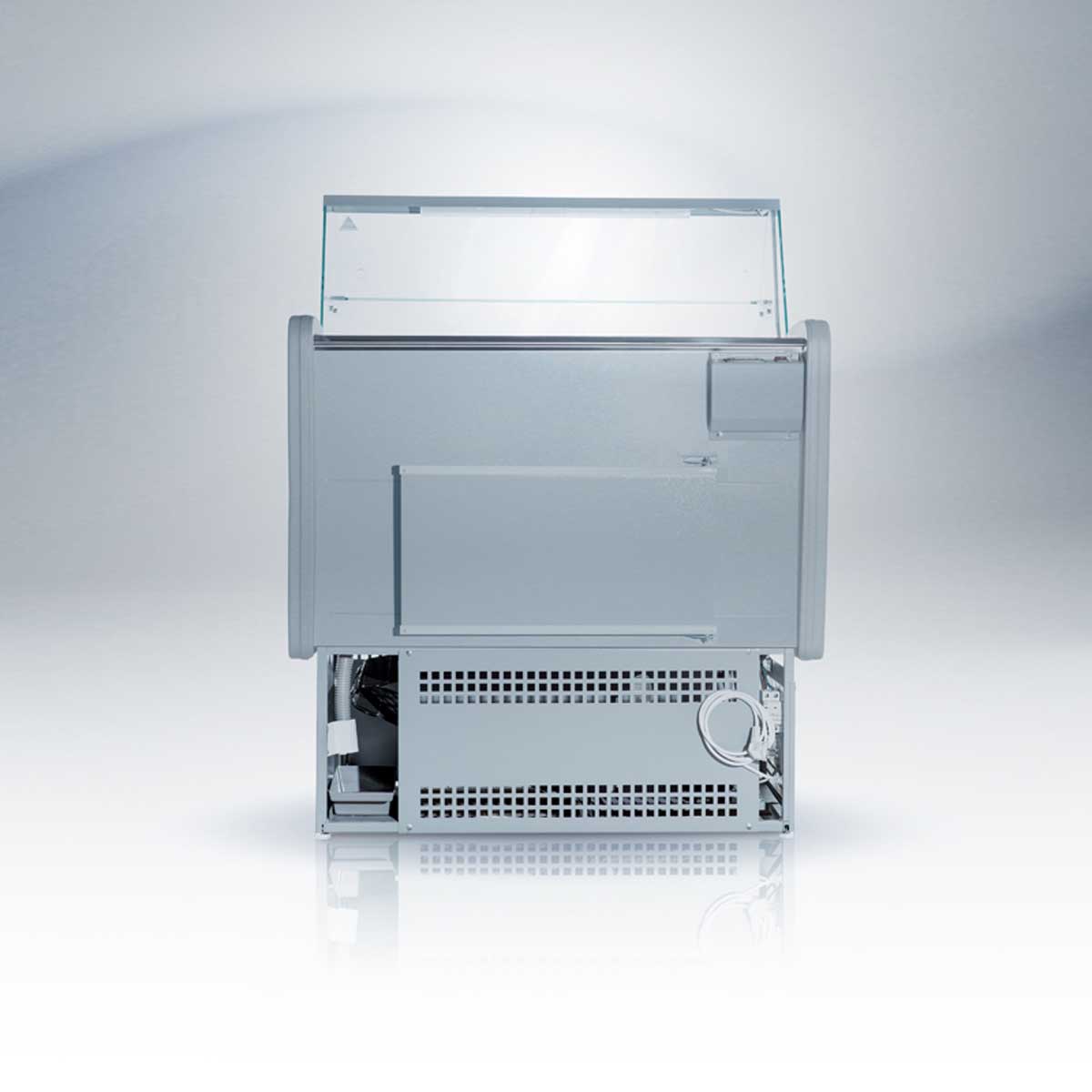 - Вместительная охлаждаемая камера (запасник) для хранения запаса товара.